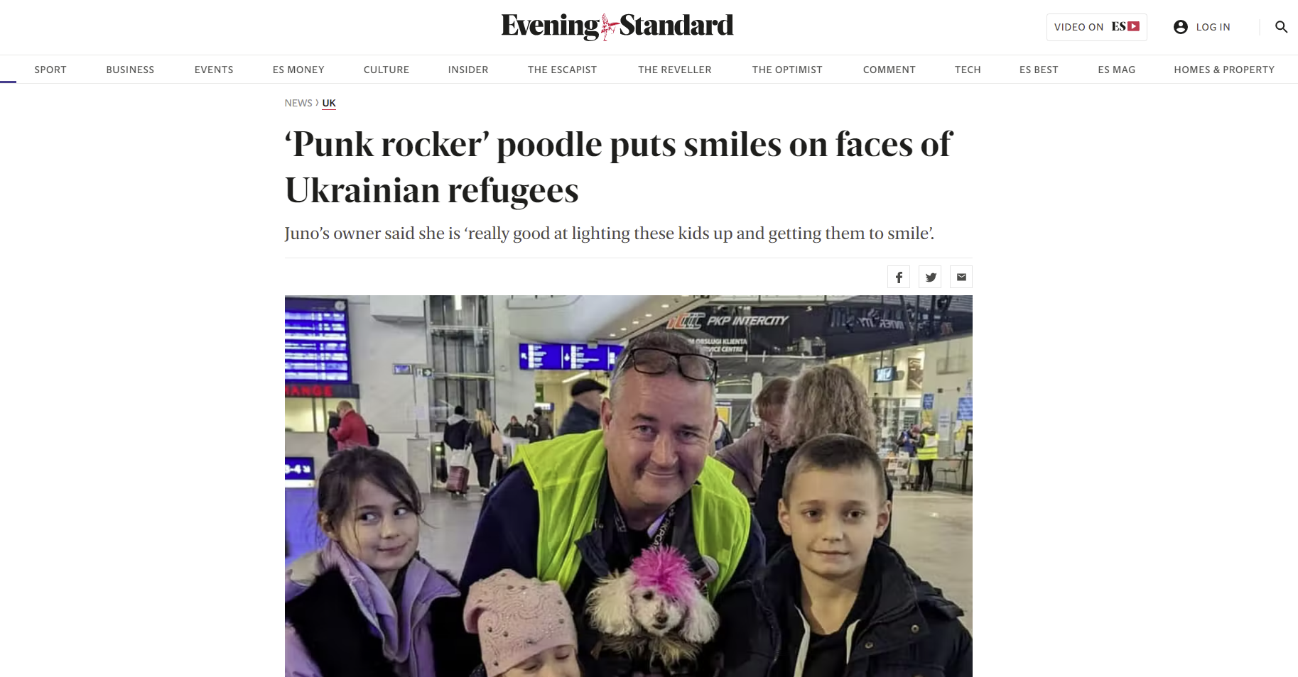 Juno's refugee relief fund has sprung from Juno and Captain Lars' work with Refugee's in Warsaw Poland, our goal is to provide temporary accommodations, food, and transportation to Ukrainian refugees stranded in Warsaw after fleeing Ukraine due to the Russian invasion. Originally our goal was to not take any financial donations, but rather match donors directly with refugee families, so that they could buy air tickets directly for the families, eliminating any middlemen and letting the donors have a relationship with the people they are helping directly. We are still happy to do this, but we've had several requests from donors and other charities to set up a 501c to accept donations directly so that we can distribute funds on the ground in Warsaw. If you chose to donate to us, your money will go directly to purchasing tickets for refugees, buying bulk food for the refugee centers and orphanages we support in Warsaw and Ukraine, and funding housing and transportation for the volunteers we work with to be both in Poland and Ukraine. Plus the occasional treat for Juno! Juno has been an amazing asset, when ever we meet refugees, she is happy to sit with them, and she can put a smile on anyone's face, from 1yr old to 90, she's been spreading the love. There was a very nice article about our efforts in the London Evening Standard here -